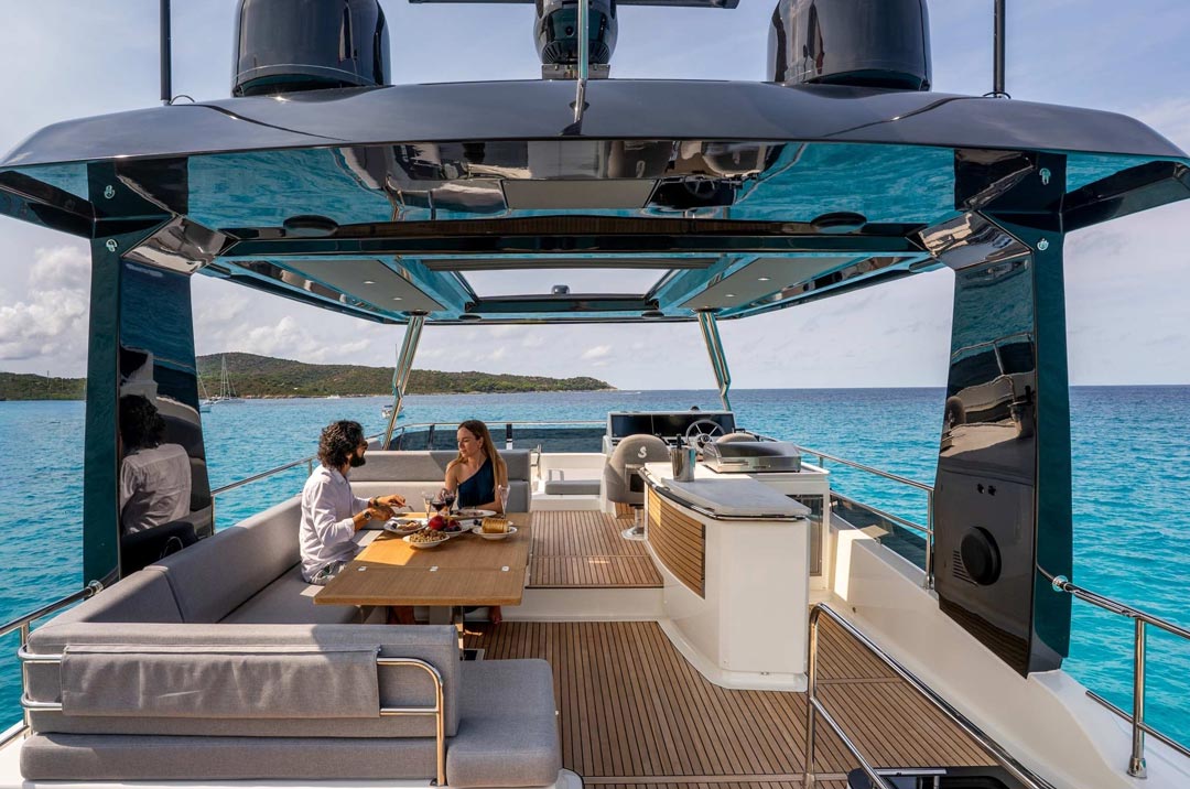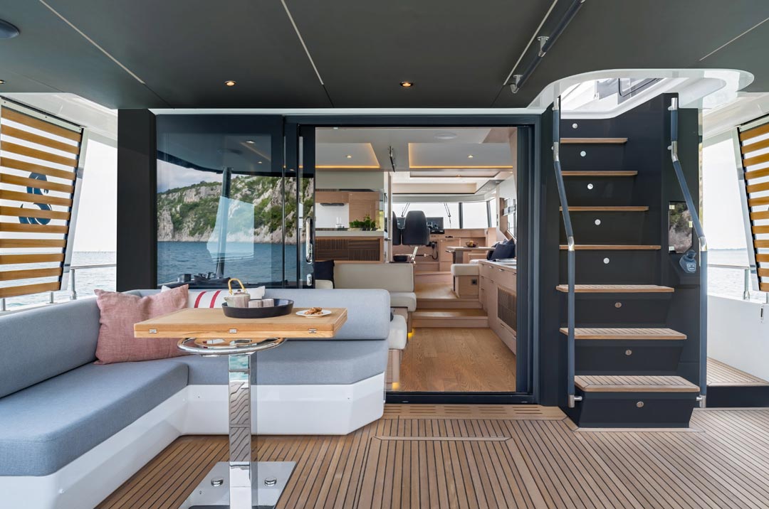 Die Ergonomie ist bemerkenswert gut – alles ist dort, wo es sein sollte – und die Sitzanordnung setzt neue Maßstäbe in Sachen Komfort, sowohl bei den Kapitänssesseln als auch beim schönen Tagesbett an Backbord.