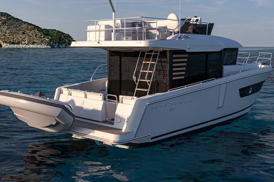 Mit modernem Design, eleganten Oberflächen und intelligenten Innovationen trifft die neue Swift Trawler 37 den Sweet Spot und bietet die perfekte Mischung aus Fahrleistung und charakteristischen Funktionen, die die Kunden in unser Trawler-Universum eintauchen lassen.
